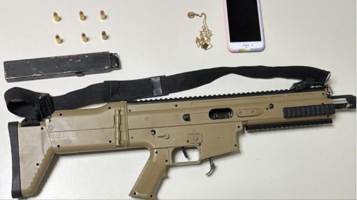 Durante a aproximação, os policiais foram recebidos a tiros, levando a um revide. Após o confronto, o suspeito foi abordado portando uma submetralhadora municiada e um celular.