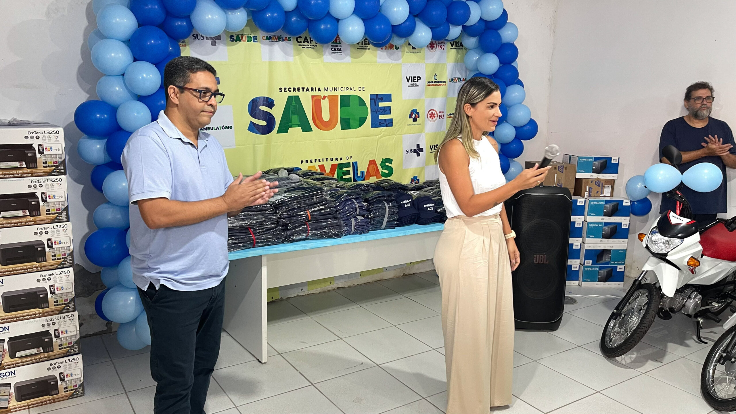 Foram entregues uniformes, impressoras, computadores, nobreaks e quatro motocicletas, que agora integram a rotina da secretaria. Os novos equipamentos vão garantir mais agilidade nos processos administrativos e mais eficiência nas ações externas, como visitas domiciliares, acompanhamento de pacientes e apoio às unidades de saúde.