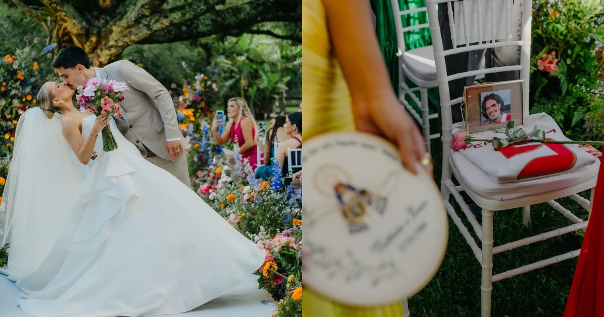 Próximo ao altar, uma cadeira foi reservada com uma foto de Fernandão, a camisa da conquista do Mundial de Clubes de 2006 e uma rosa, representando a presença simbólica do ex-jogador em um dos dias mais importantes da vida do filho.