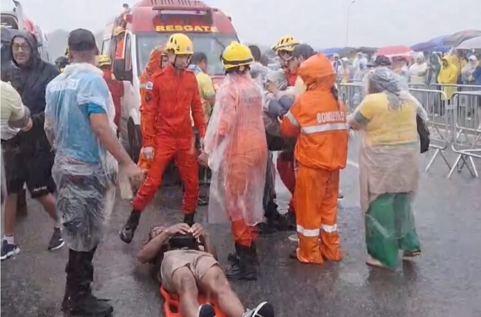 A pancada elétrica provocou pânico. Várias pessoas caíram no chão e houve choques elétricos entre quem buscava abrigo sob a forte chuva. O atraso no cronograma abriu apreensão, já que a previsão era chegar às 12h à praça.