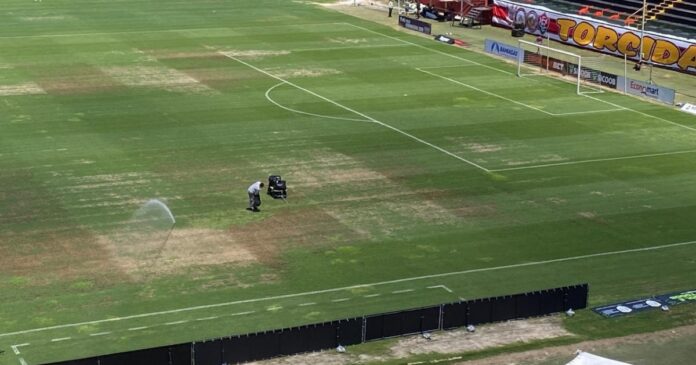 Após uma praga no fim de dezembro, o gramado do Barradão passa por manutenção. Horas antes do Ba-Vi deste domingo (25), o campo recebeu um pó verde para disfarçar falhas estéticas. A Bahia Notícias procurou o Vitória, que informou que o gramado está em condições normais de jogo e que o produto tem finalidade apenas estética.