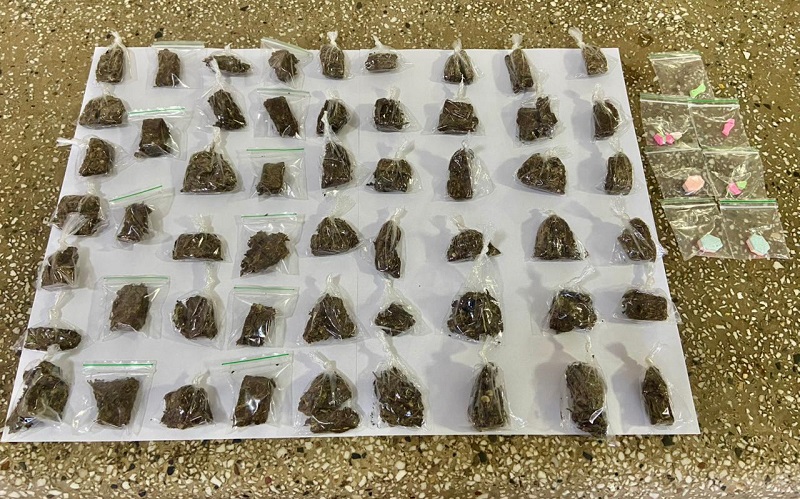 Durante a varredura no perímetro, a sacola foi encontrada contendo 54 porções de maconha, totalizando 162 gramas, além de sete porções de LSD, uma droga sintética alucinógena.