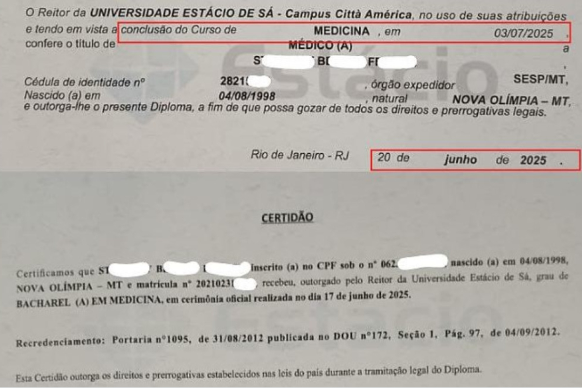 As jovens foram detidas ao tentar dar entrada na documentação funcional do CRM-MT, utilizando diplomas que teriam sido falsificados, segundo apuração da Polícia Militar.
