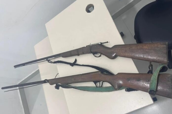 Durante a ação, foram encontrados indícios relacionados à ocorrência, além de duas espingardas de fabricação artesanal em posse do homem.