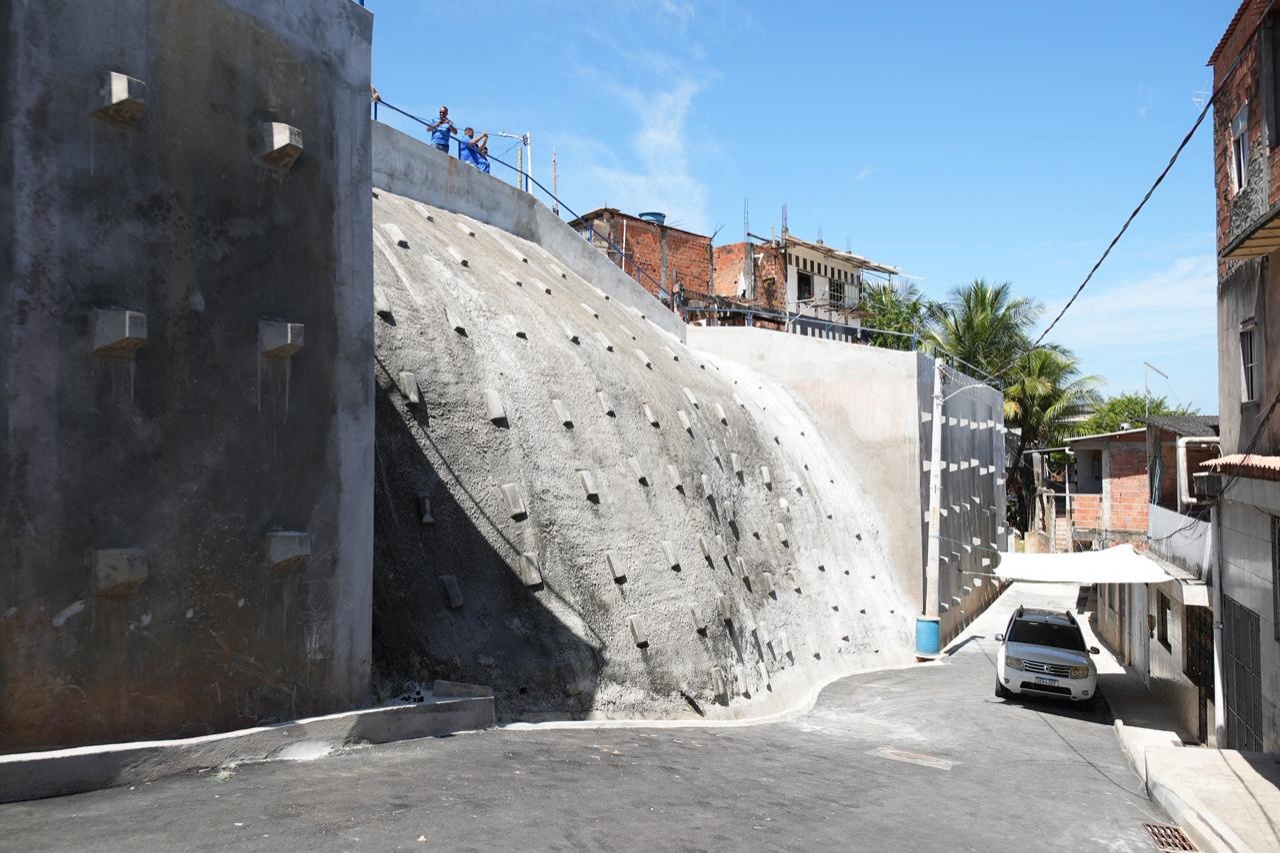 Com um investimento de R$ 1,8 milhão, a Prefeitura de Salvador entregou, nesta segunda-feira (9), mais uma obra de contenção de encosta em Mirantes de Periperi, na 1ª Travessa Antônio Teixeira, para oferecer maior segurança às famílias da região. Até o momento, essa intervenção já protegeu mais de 570 áreas de risco na capital baiana.