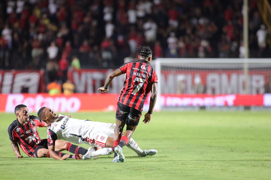 No Barradão, Flamengo derrotou o Vitória por 2 a 1, abrindo a 3ª rodada do Campeonato Brasileiro de 2026. Erick Pulgar abriu aos 14 minutos e Everton Cebolinha ampliou aos acréscimos da primeira etapa, aos 49. Com o resultado, o Vitória soma três pontos e ocupa temporariamente a 13ª posição; os demais nove jogos da rodada ainda serão disputados entre quarta e quinta-feira. A partida ainda marcou a reestreia de Marinho pelo Vitória, dez anos depois.