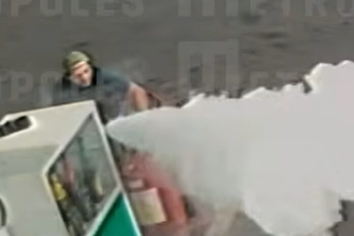 A situação ganhou contornos mais graves quando o motorista da Jaguar acionou um extintor de incêndio de pó químico de cerca de 50 kg, espalhando o material por todo o estabelecimento. A gravação mostra a fumaça branca tomando conta do local, enquanto o Porsche parece discutir com a frentista e, em seguida, o motorista se levanta e parte em direção à loja de conveniência.