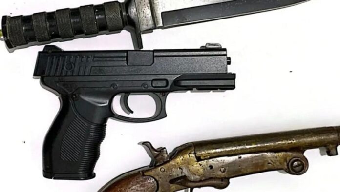 Durante as diligências, foram apreendidas no veículo uma faca, uma arma de Airsoft (simulacro) e uma arma de fogo do tipo garrucha, calibre .32.