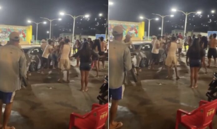 Uma festa com paredões, realizada no centro de Brejões, no Vale do Jiquiriçá, terminou em briga generalizada na noite deste domingo (15). Vídeos mostram jovens trocando socos enquanto outras pessoas, incluindo mulheres, tentam conter a confusão, com uma pessoa em desespero diante da cena.
