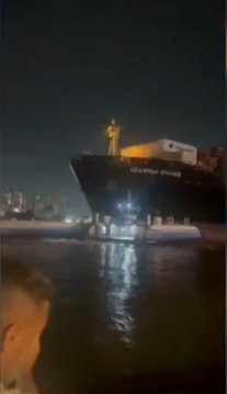 VÍDEO: No Porto de Santos, navio porta-contêineres bate em duas balsas e tripulantes saltam no mar