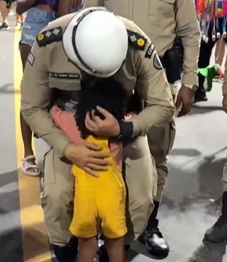 Abordagem carinhosa: Criança cumprimenta policiais durante carnaval de Salvador