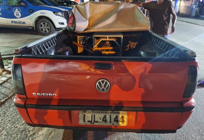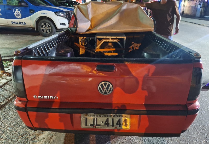 Segundo a 87ª CIPM, o barulho vinha de um Volkswagen Saveiro 1.6, de cor vermelha, placa IJL-4144, estacionado na garagem da residência. O veículo já havia sido alvo de fiscalização minutos antes pelo mesmo motivo, antes da abordagem policial.