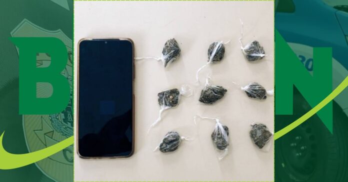 A guarnição realizava rondas na Rua Irmã Dulce, localizada no bairro Vila de Fátima, quando identificou uma mulher que, ao notar a presença da viatura, tentou fugir do local. Os policiais realizaram o acompanhamento e conseguiram interceptar a suspeita. Durante a busca e averiguação, os militares encontraram com ela: