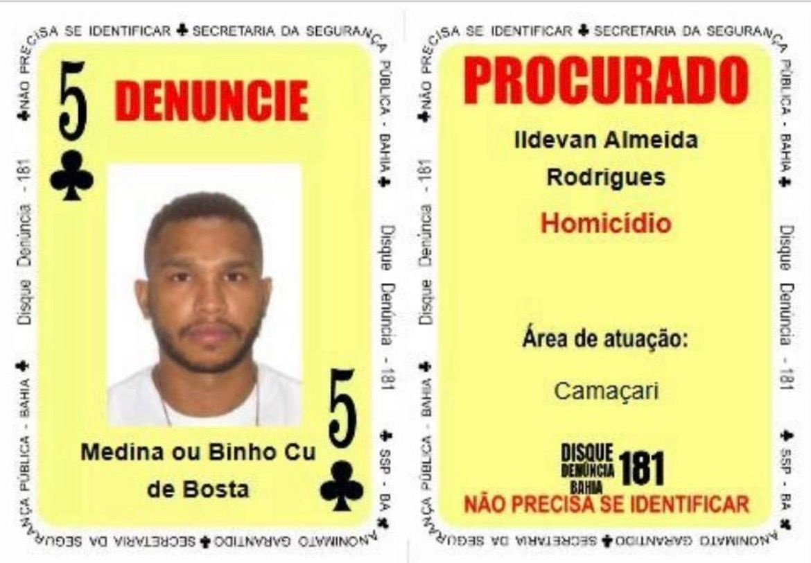 Segundo a Secretaria de Segurança Pública da Bahia (SSP-BA), o investigado figurava como o “5 de Paus” do Baralho do Crime, ferramenta que reúne suspeitos de alta periculosidade. Além de policiais civis da Bahia, a ação contou com a Força Integrada de Combate ao Crime Organizado (FICCO) e a Polícia Militar paulista.