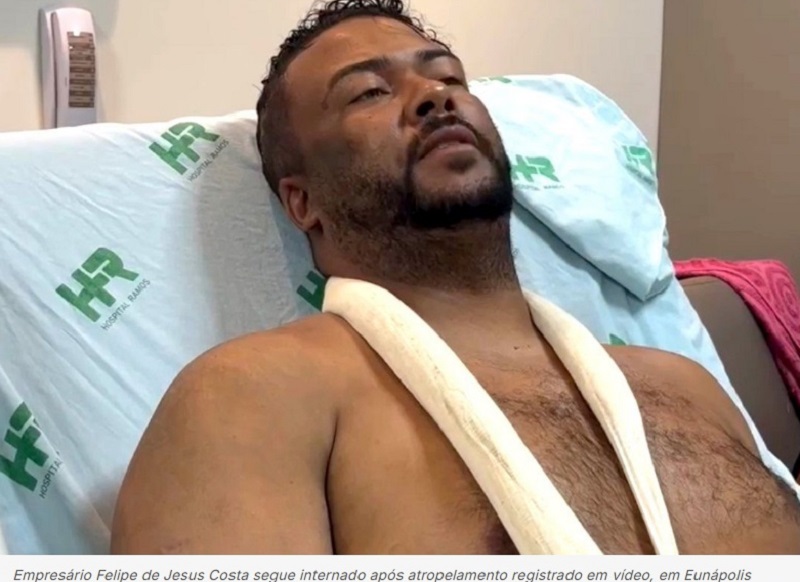 Eunápolis, na Bahia, cidade onde acontece o caso, tem um empresário identificado como Felipe de Jesus Costa, 32 anos, internado após ser atropelado. A Polícia Civil investiga o episódio como resultado de uma sequência de ameaças atribuídas ao cunhado, apontado como o motorista do carro visto no vídeo gravado pouco antes da colisão.