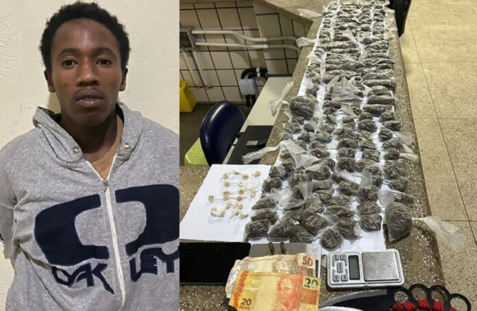 Questionado, o homem informou residir em Medeiros Neto há cerca de um mês e atuar na distribuição de drogas por ordem de terceiros. Ele foi identificado como Andreison Adão Silva, 19 anos, conhecido como “Neguinho”.