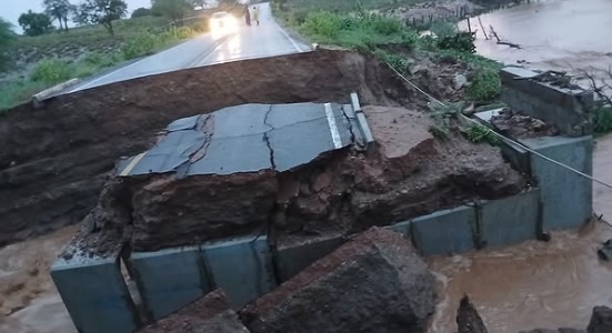 Ponte desaba após fortes chuvas e interdita trecho da BA-046 em Iaçu