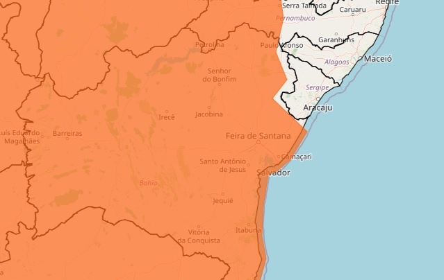 Quase todas as cidades da Bahia estão sob alerta laranja para chuvas intensas, conforme o Inmet informou na manhã desta terça-feira (24). O aviso é válido até a noite de sexta-feira (27). Além disso, Caravelas, Ibirapuã, Lajedão, Mucuri e Nova Viçosa, no Extremo Sul, estão sob alerta vermelho, classificação que indica grande perigo.