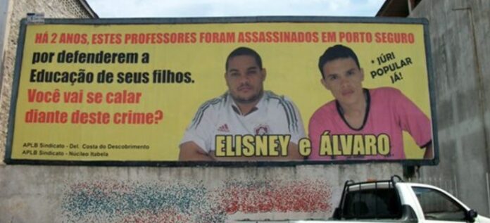 O Tribunal de Justiça da Bahia marcou para o dia 5 de maio o júri popular de três acusados pelo assassinato dos professores Álvaro Henrique e Elisney Pereira, dirigentes da APLB, ocorrido em 2009, em Porto Seguro, na Costa do Descobrimento. Os réus são Edésio Ferreira Lima Dantas, então secretário municipal de Governo e Comunicação; Sandoval Barbosa dos Santos e Joilson Rodrigues Barbosa, policiais militares que atuavam como intermediários na segurança do então prefeito Gilberto Abade. Todos respondem em liberdade.