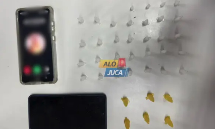 Durante a incursão, o suspeito tentou fugir ao perceber a aproximação da viatura, foi alcançado e, na abordagem, foram encontrados 38 pinos de cocaína e dois aparelhos celulares.