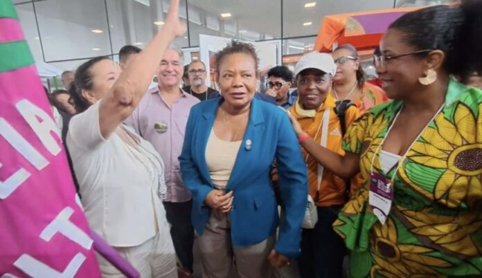 A ministra da Cultura, Margareth Menezes, esteve em Feira de Santana neste sábado (28), participando da III Teia dos Pontos de Cultura da Bahia, realizada no Centro de Convenções.