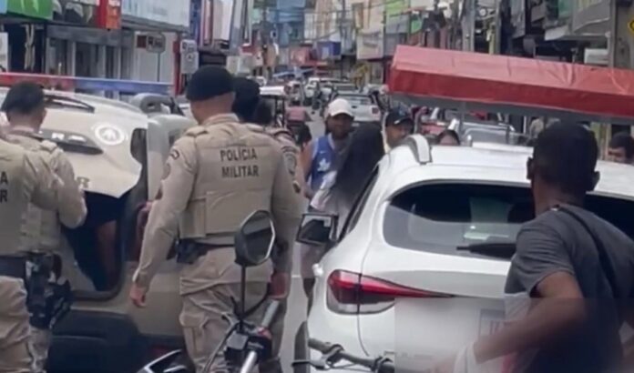Uma guarnição da PM que passava pelo local foi acionada e se deslocou até a loja. O suspeito ainda estava no estabelecimento quando foi abordado pela polícia.