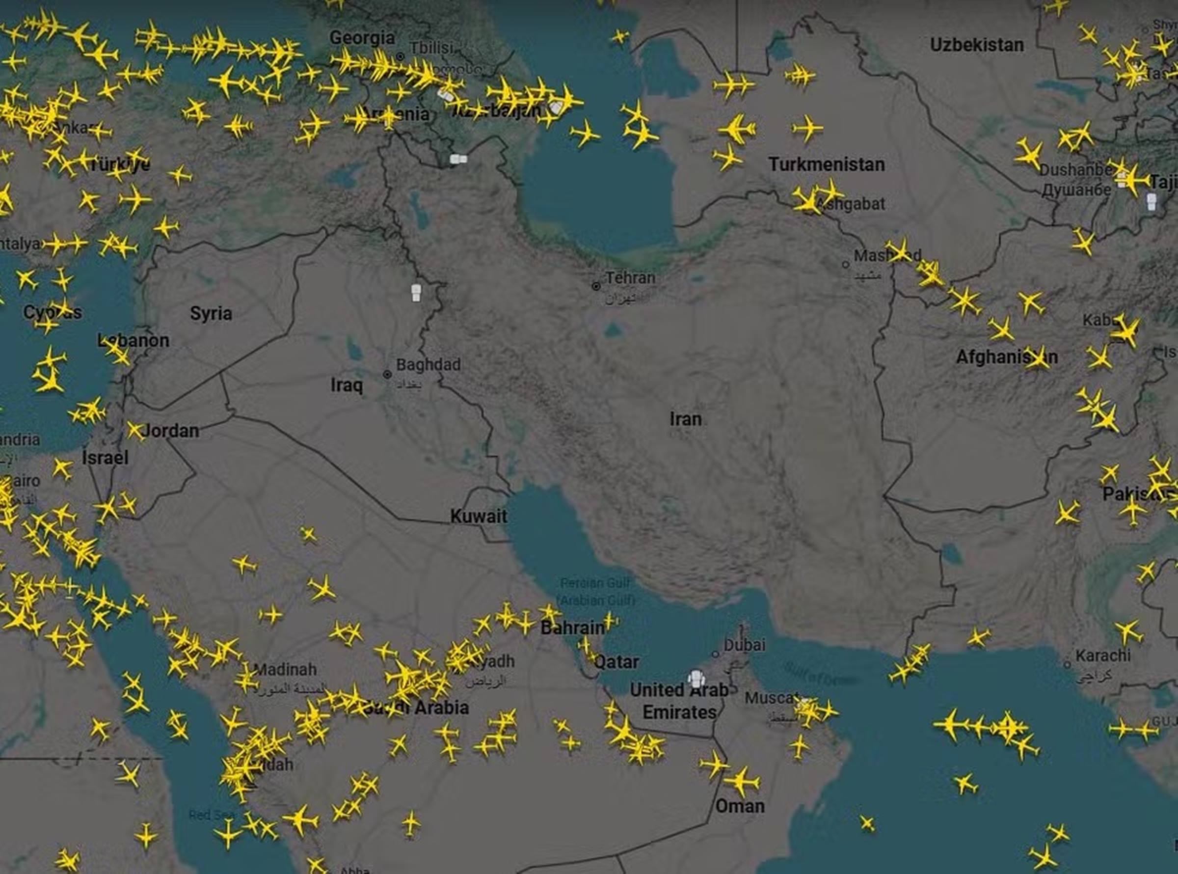 Neste domingo (1º/3), pelo menos 2.800 voos foram cancelados. O espaço aéreo foi fechado em países estratégicos como Israel, Catar, Síria, Irã, Iraque, Kuwait, Bahrain, Omã e Emirados Árabes Unidos.