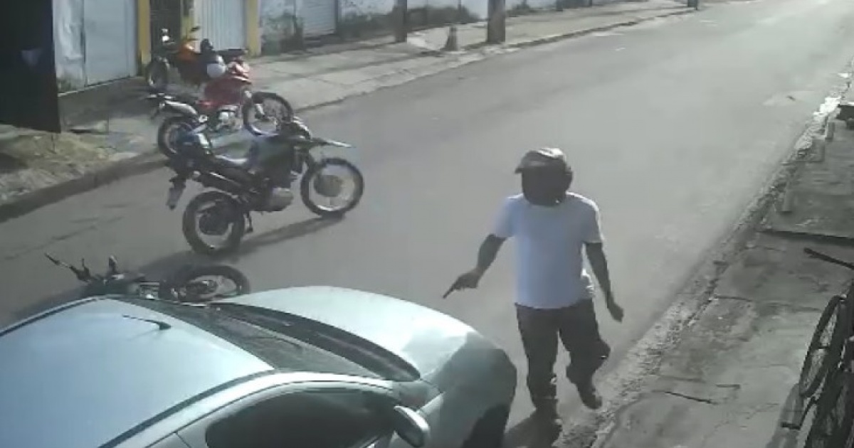 O assaltante, a bordo de outra moto, desceu armado e abordou a vítima. Para intimidar quem estivesse no local, o criminoso efetuou um disparo para o alto, o que provocou correria entre os moradores. Até o início da tarde desta sexta, não havia informações sobre a localização do acusado.