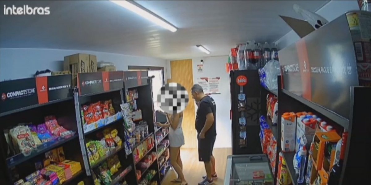 As imagens de câmeras de segurança, divulgadas nesta quarta-feira (5), mostram que o fato aconteceu em fevereiro. O flagrante ocorreu no mercadinho dentro do prédio onde a vítima e o suspeito residem.