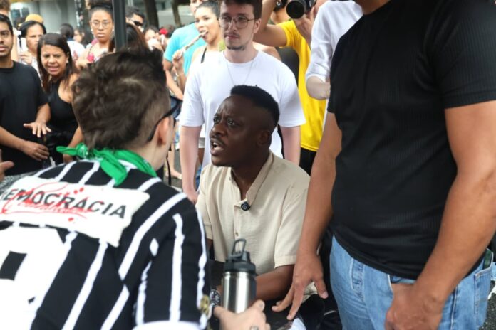 A iniciativa de Zacarias provocou reação entre manifestantes da esquerda, que pediam que o deputado recuasse e deixasse a Paulista em paz. As tensões ficaram evidentes entre quem defende políticas de direita e quem defende pautas de combate à violência de gênero.