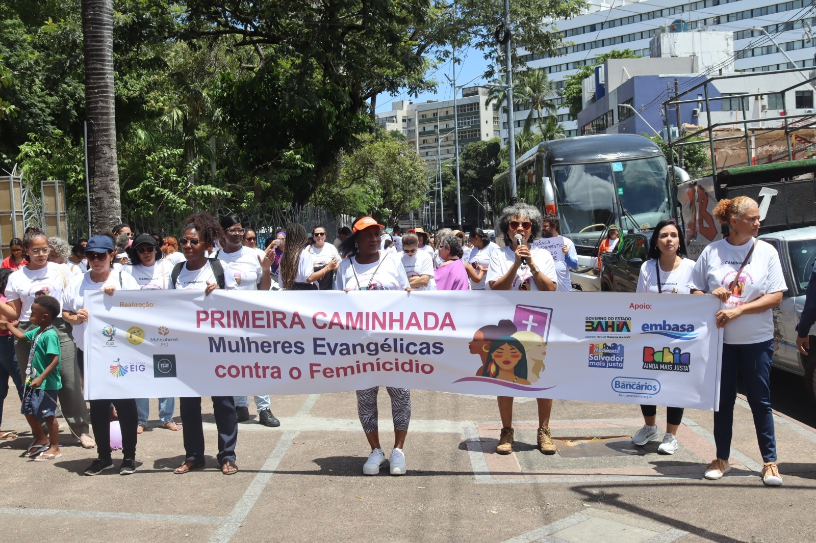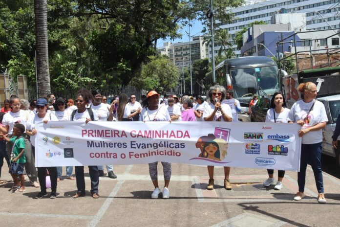 Cerca de 200 pessoas participaram, na manhã deste sábado (7), da I Caminhada de Mulheres Evangélicas contra o Feminicídio, no centro de Salvador. O grupo percorreu o trajeto entre o Campo Grande e a Praça da Piedade com o objetivo de conscientizar localidades religiosas sobre a violência doméstica e de gênero.