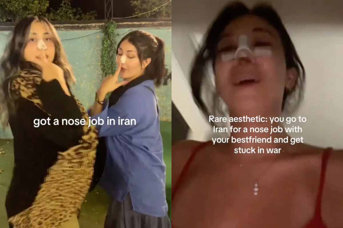 “Só pode acontecer com você: você vai ao Irã com sua melhor amiga para fazer uma rinoplastia e acaba presa no meio de uma guerra”, escreveu no TikTok. No vídeo, ela aparece posando com medo, com o nariz ainda enfaixado.