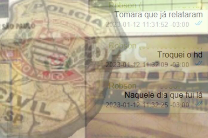 A Polícia Federal, com base em mensagens interceptadas, confirmou um esquema de corrupção envolvendo policiais civis de São Paulo. O empresário Robson Martins de Souza, apontado como operador, relatou ter trocado um HD apreendido pela polícia por outro com conteúdo inofensivo e ter retirado quase todos os documentos comprometedores.