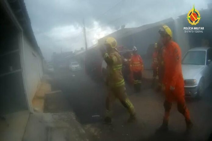 A Polícia Militar do Distrito Federal (PMDF) foi acionada para atender uma possível violação de violência doméstica, enquanto o Corpo de Bombeiros atuava para conter as chamas que se alastravam pela residência.