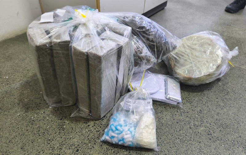 Durante a varredura no quintal e no interior do imóvel, a equipe localizou e apreendeu: 14 tabletes e diversos papelotes de maconha, totalizando aproximadamente 13,636 quilos; três pedras brutas de crack, pesando cerca de 5,210 quilos; e cerca de 220 gramas de cocaína, distribuídas em 135 pinos e uma porção. Também houve uma muda de maconha, duas balanças de precisão, dois celulares, R$ 52,00 em espécie, uma motocicleta Honda Pop branca e um documento de identidade.