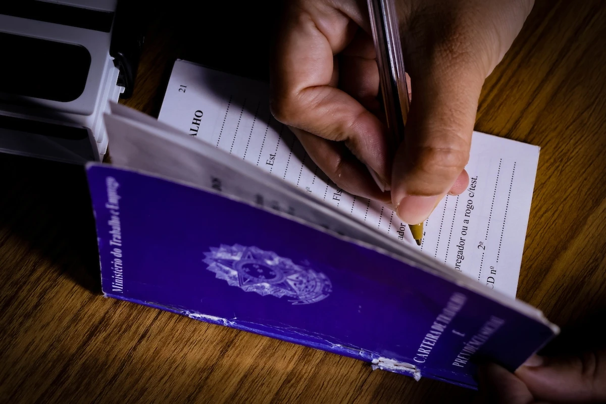 Pessoa assinando carteira de trabalho