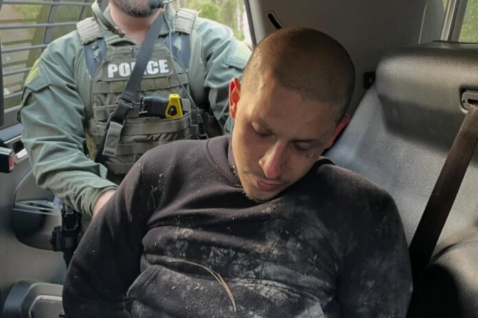 Barrios foi localizado no início da manhã, após uma perseguição de carro. Na fuga, o suspeito também supostamente roubou uma BMW. Unidades do sheriff seguiram o rastro pela mata e o capturaram sem incidentes perto de Callahan, antes das 8h, conforme nota publicada nas redes sociais.