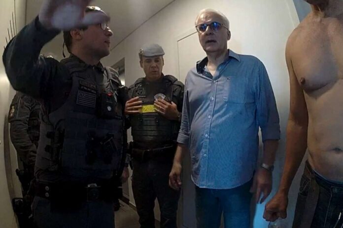 Ao chegar ao prédio, a narrativa apresentada pelo oficial insistia em manter a entrada no interior do apartamento, apesar de orientações para aguardar a perícia e preservar o local. Os vídeos mostram o desembargador orientando o colega a se manter longe do interior, mas a pressão persiste e o tenente-coronel acompanha o desembargador até a porta do imóvel. Em poucos segundos, os dois ingressam no apartamento, com o local já sob preservação policial, e permanece o registro de 12 minutos de permanência do militar no interior, manifestando desconforto com a situação.