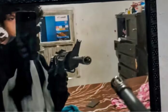 Foto colorida de estudante exibindo fuzil horas antes de atacar e matar professoras em escola particular no México – Reprodução/ Redes sociais