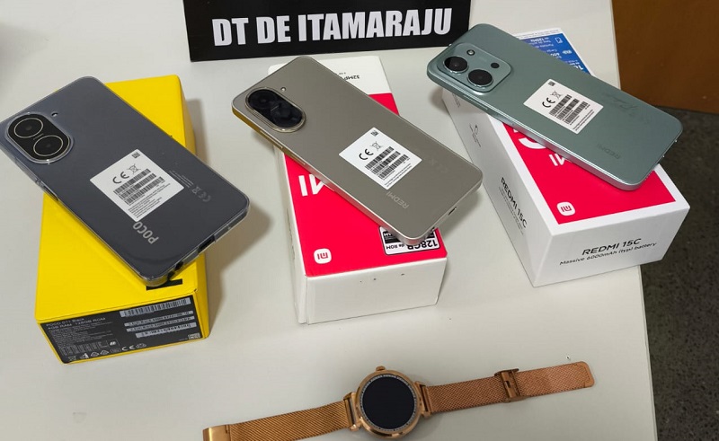 Recuperação de bens: na continuidade das diligências, ainda nesta semana, a Polícia Civil identificou receptadores dos itens furtados e promoveu a recuperação de mais três aparelhos celulares, totalizando quatro celulares e um relógio digital recuperados até o momento.