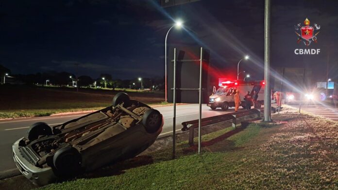 De acordo com o Corpo de Bombeiros Militar do Distrito Federal (CBMDF), o acidente ocorreu por volta das 23h, em frente à SMPW Quadra 14, conjunto 01, quando um Renault Clio cinza capotou na terceira faixa da via. Duas viaturas dos bombeiros foram deslocadas ao local para atendimento.