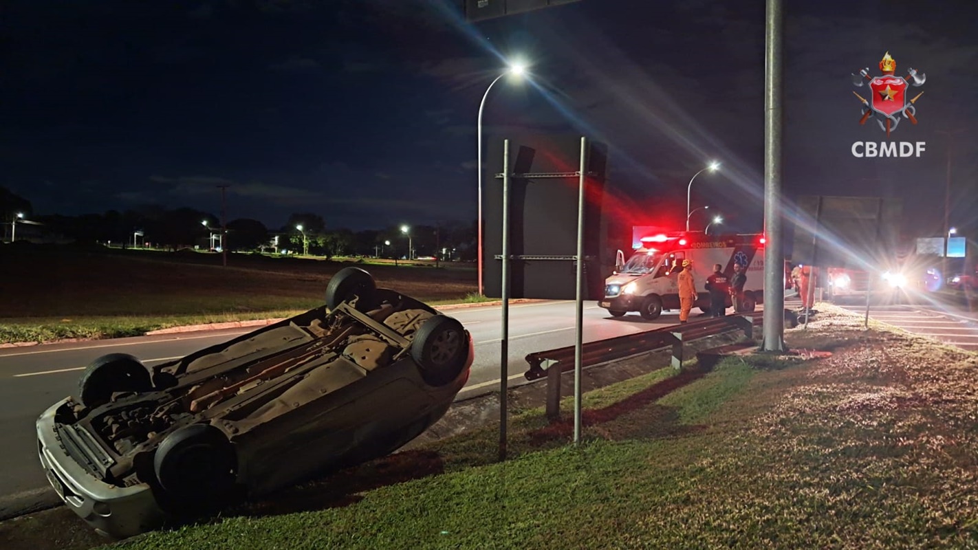 Ao chegar ao local, a equipe encontrou o condutor fora do veículo e sem ferimentos perceptíveis. Segundo o CBMDF, ele recusou o transporte para o hospital, não havendo necessidade de atendimento médico imediato após o acidente.