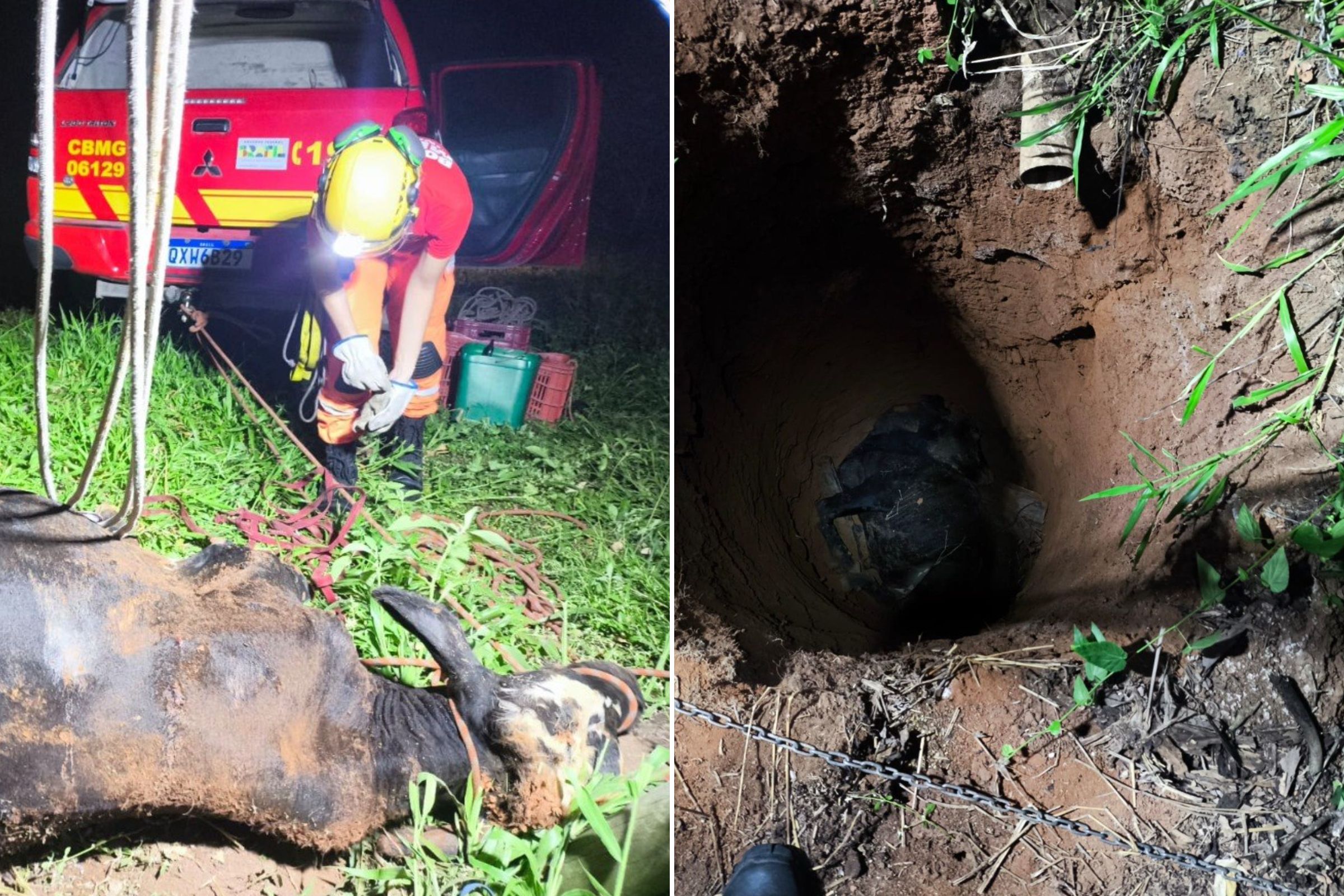 Segundo o Corpo de Bombeiros Militar de Minas Gerais (CBMMG), a ocorrência ocorreu na localidade de Comunheira Jouberte, na região centro-oeste do estado. Ao chegar ao local, a equipe encontrou o bovino ainda debilitado durante a avaliação inicial, mas vivo, sem ferimentos aparentes na retirada.
