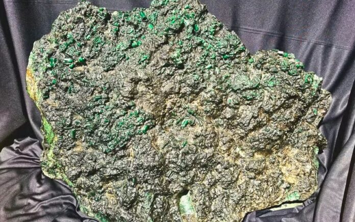 A peça pesa 142 quilos e é formada por cristais de berilo verde, características próprias das esmeraldas em estado natural. A formação original foi preservada, sem lapidação que alterasse sua configuração, o que preserva traços geológicos relevantes e confere à joia um valor científico adicional, além da aparência impressionante.