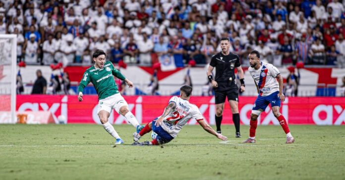 Sobre o jogo em si, o Bahia iniciou pressionando, buscando acelerar o ritmo diante da minha presença da torcida na Fonte Nova. O Palmeiras, por sua vez, equilibrou as ações e passou a controlar mais a posse de bola. Aos momentos finais do primeiro tempo, o Palmeiras abriu o placar com Jhon Arias, que encontrou espaço pela esquerda e finalizou com precisão para colocar o time visitante em vantagem.