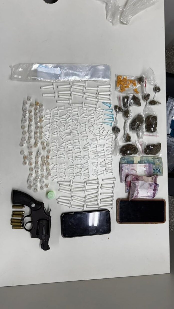 Entre os itens apreendidos estavam um revólver calibre 38, 27 comprimidos de ecstasy, 13 porções de maconha, 248 pinos de cocaína, 71 pedras de crack, além de embalagens plásticas utilizadas para acondicionar drogas e dois aparelhos celulares. A contagem do material revela a escala da atividade ilícita naquela região e a necessidade de resposta policial constante para coibir esse tipo de prática.