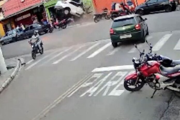 Câmeras de segurança registraram o momento em que o carro passa em alta velocidade pela rua General Bertoldo Klinger e bate de frente no muro de uma residência na rua Santa Cruz. As imagens, descritas pela polícia como fortes, ajudam a esclarecer a sequência do acidente.